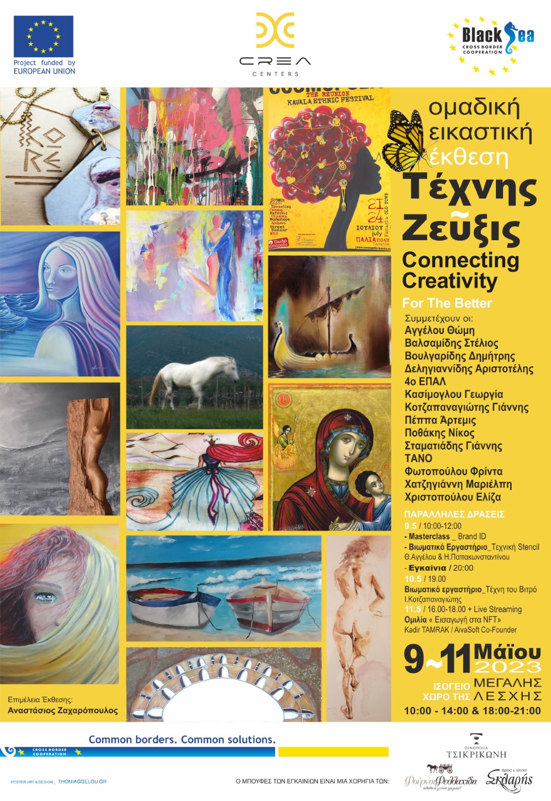 ️H ομαδική έκθεση θα φέρει τον τίτλο: «Τέχνης Ζεῦξις – Connecting Creativity» και πέραν από την έκθεση των έργων των καλλιτεχνών, στο πλαίσιο του Crea Centers, θα διοργανωθούν πλήθος παράλληλων δράσεων, έτσι ώστε να παρουσιαστεί η λειτουργία του θεσμού του Kavala Crea Centers.